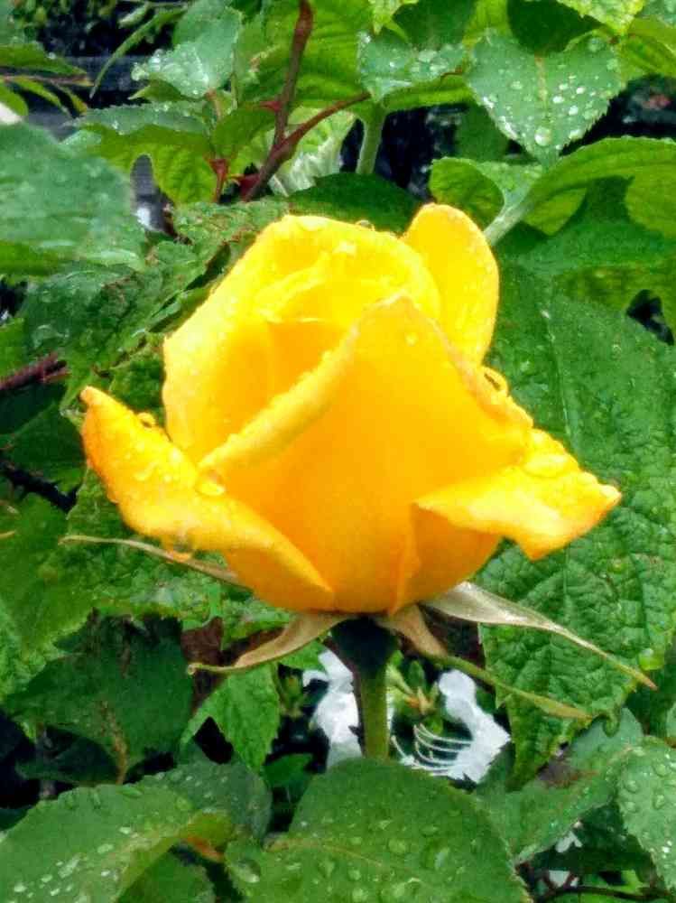 買い物帰りに、通り道のお宅の花壇に、雨の中☔一生懸命咲いている、黄色い薔薇が有りました。