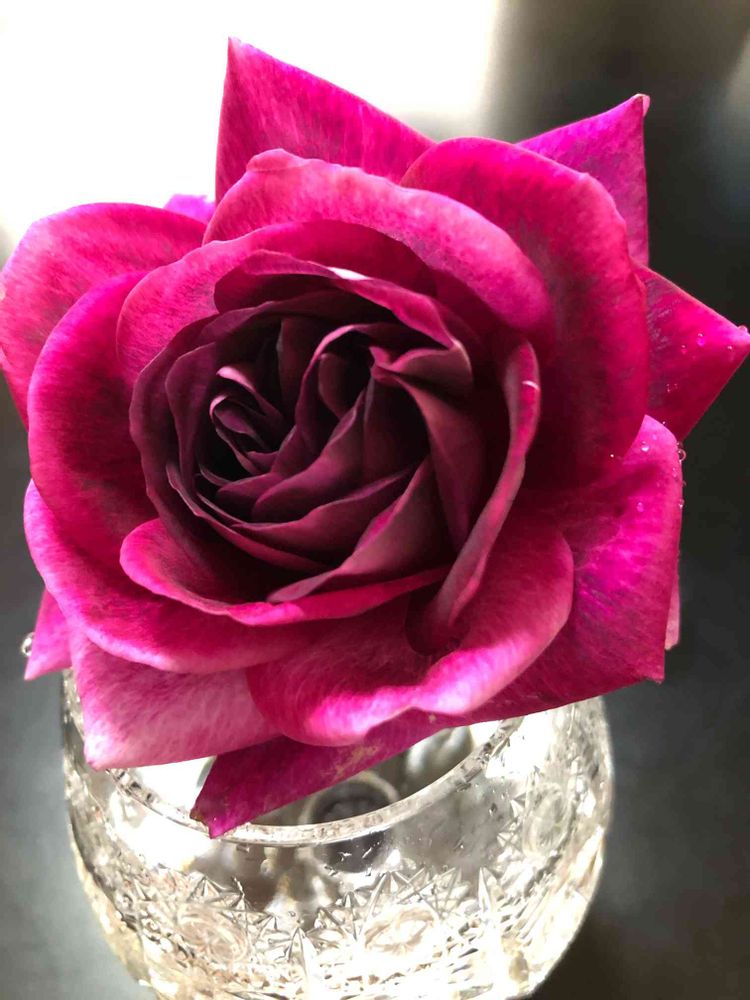 葉陰でうなだれて咲いていたバーガンディアイスバーグをカットしてきました💗