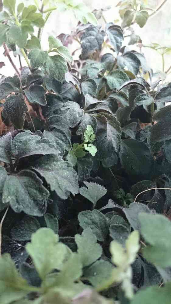 真ん中のちっさい若葉可愛いですね。でも周りを囲う大人葉っぱは毛が生えてて黒くて