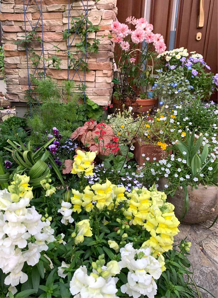 玄関左側も満開💕ラックスやネモフィラ等冬からの子達もそろそろ終わりかけの様です😊