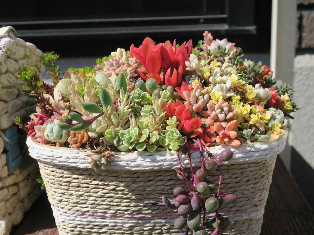 まだ紅葉が残っている多肉植物の寄せ植え✿