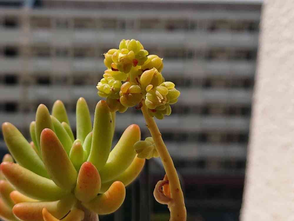 他の多肉たちはちゃんと花らしい花が咲きますが、この子はどうなんですかね?!