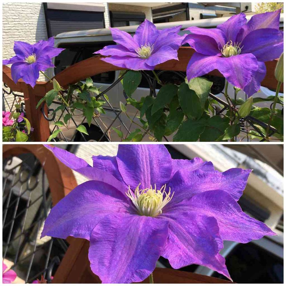 伊勢原の運動公園に行った際に凄く大輪のクレマチスが目に入りたまたま売ってたので買ってきました💜