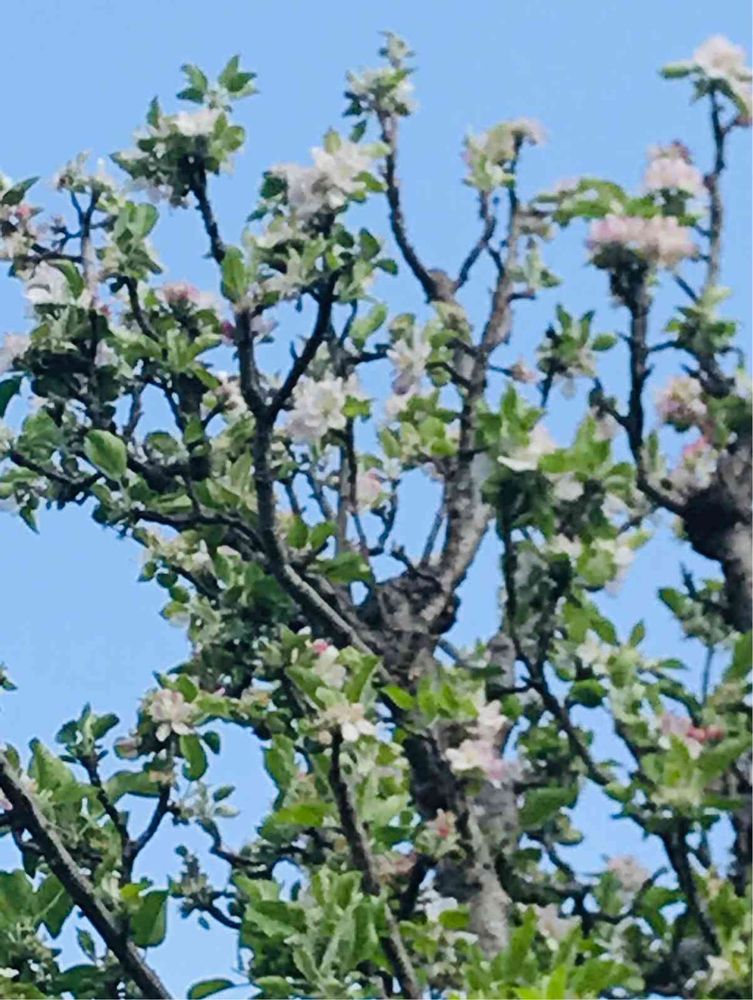 珍しい木を見つけました。沢山の花を付けています。本当にリンゴが実るのでしょうか。