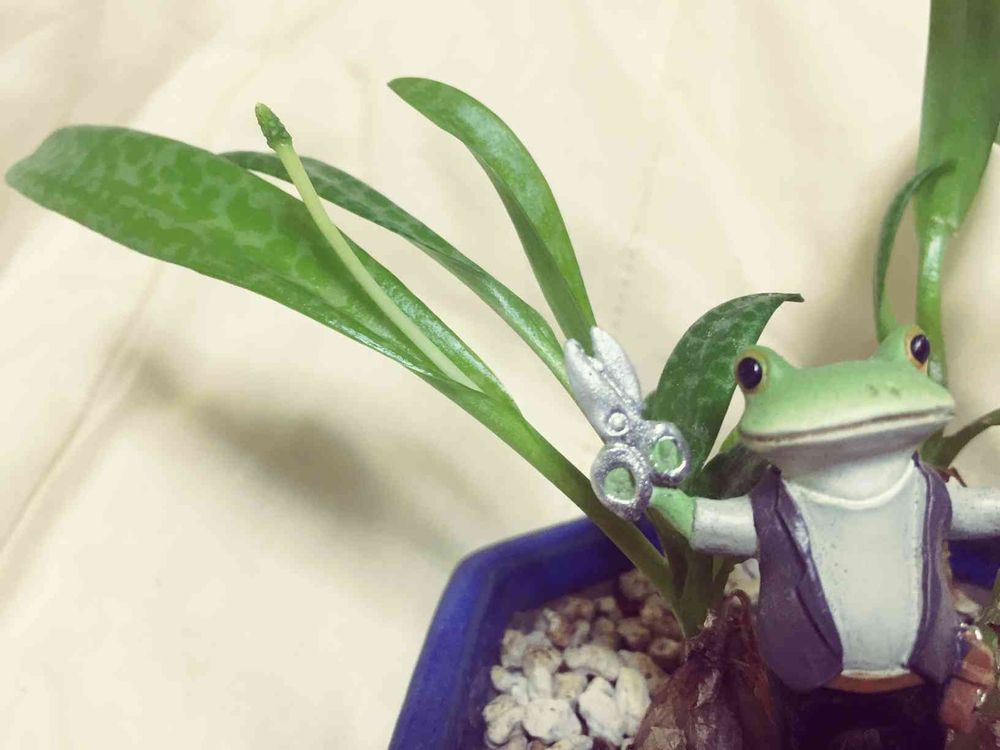 ヒョウ柄の葉っぱでお馴染みのパキフローラちゃんついに花芽の様なものが、、、(゚ロ゚)(゚ロ゚)
