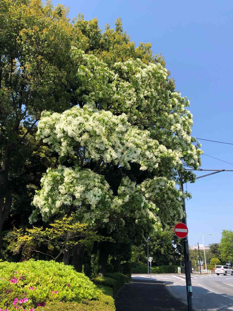 わたしが昨日、投稿したヒトツバタゴとは比べものにならないくらい大きな木ですね。こちらのは20年経っているかどうか…?まだ若い木です。花が咲いていると木の印象が変わりますね(^_^)