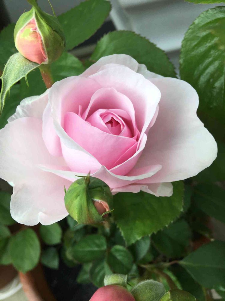 マンションの小庭とテラスで鉢植えのバラを中心にお気に入りの植物を育てています。