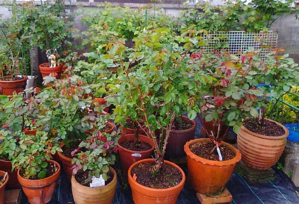 たくさんのバラの鉢植えですね😄
