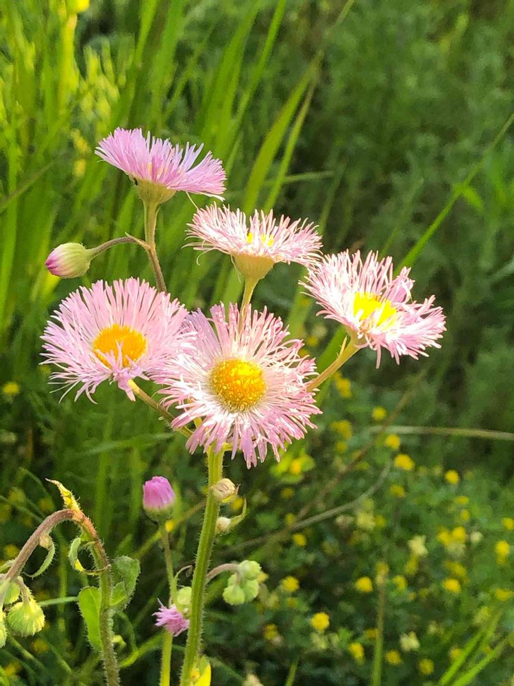 花が少しピンク色で花びらの幅が小さいことからハルジョオンかなぁ🤗