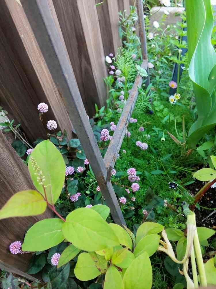 支柱の間からポリゴナムとエリゲロン🎶あれっここにもいました(°◇°)ケロケロ