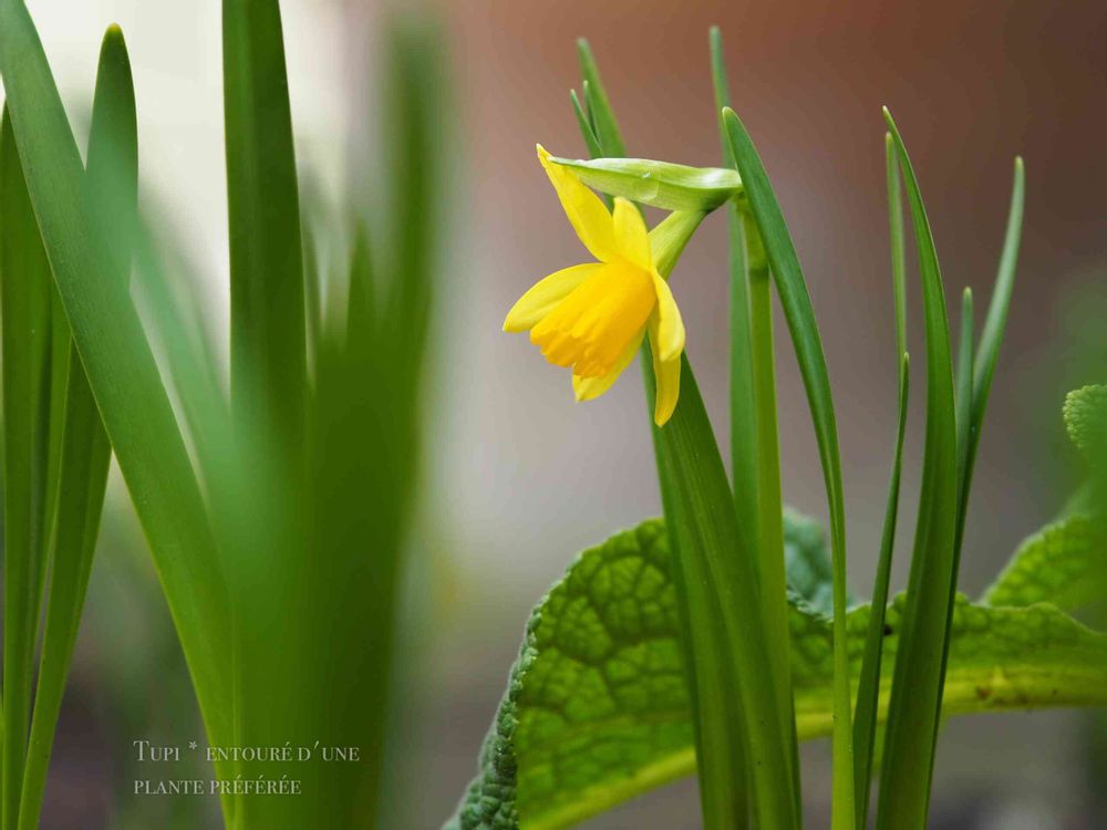 1本だけ他よりも早く咲き始めたミニ水仙。