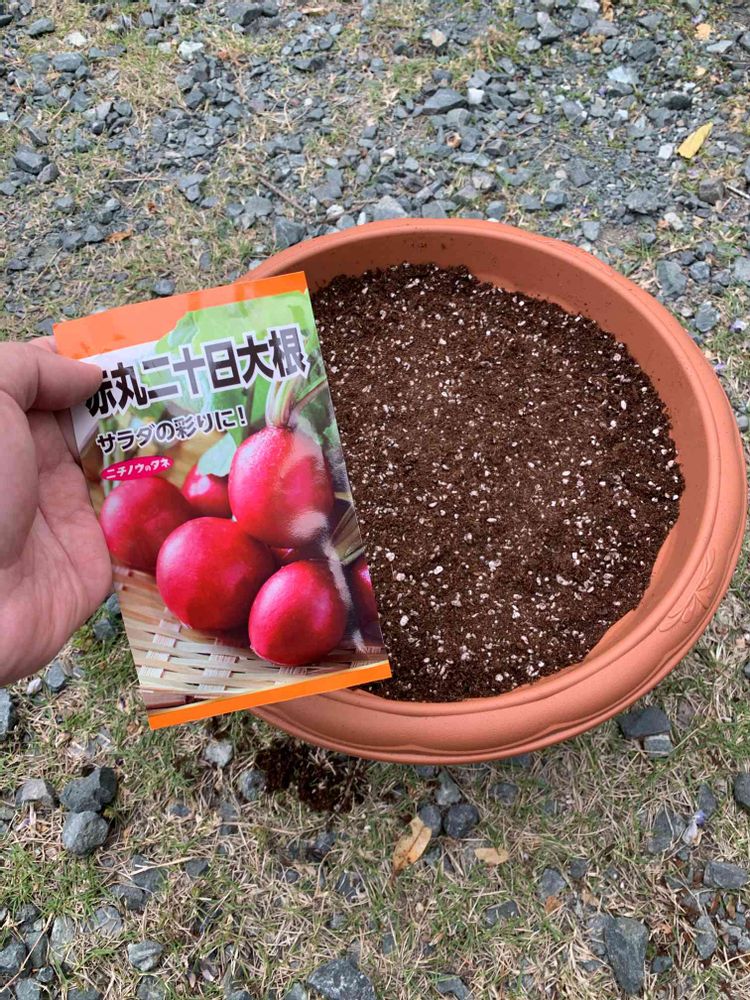 おうちde菜園でカインズから赤丸二十日大根のタネが届きました。
