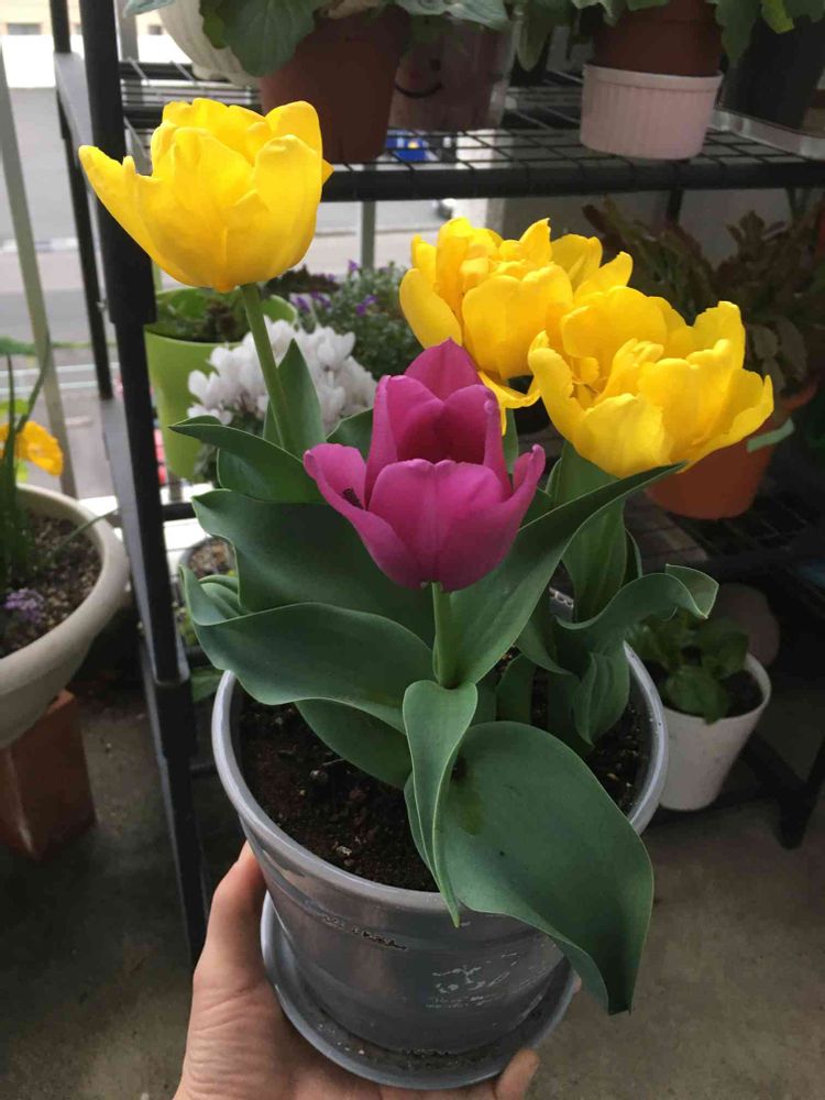 頂きもののミニチューリップが咲きそろいました😊🌷