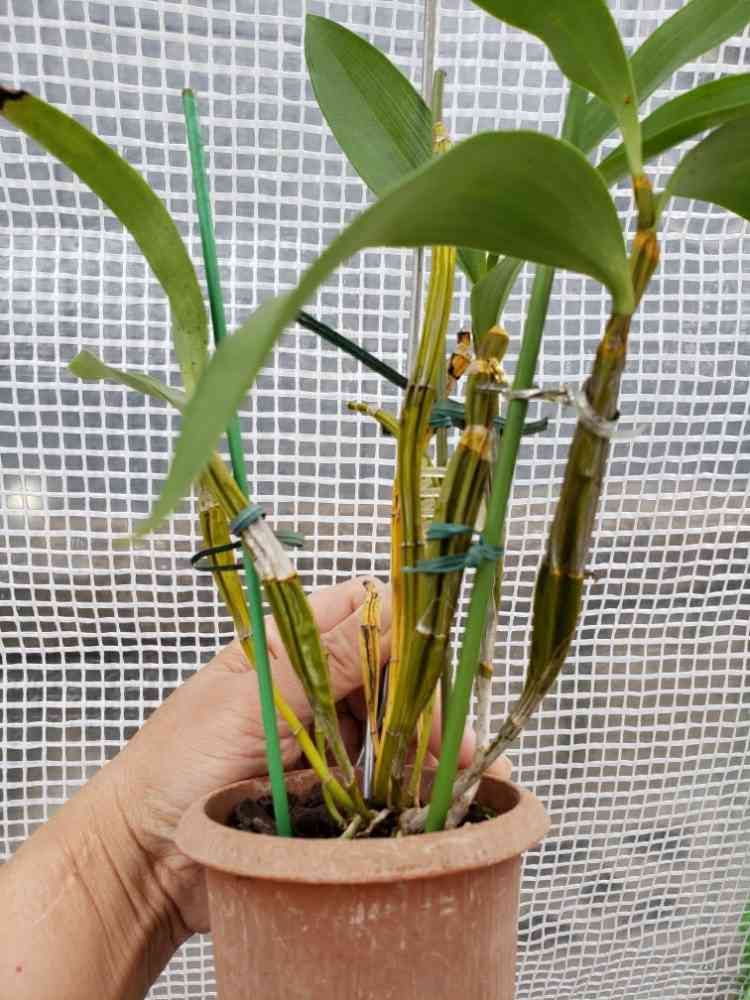デンドロビウム シルシフローラム、灌水再開は最低温度が10℃以上になってから、と思っていたら、5℃でした💦