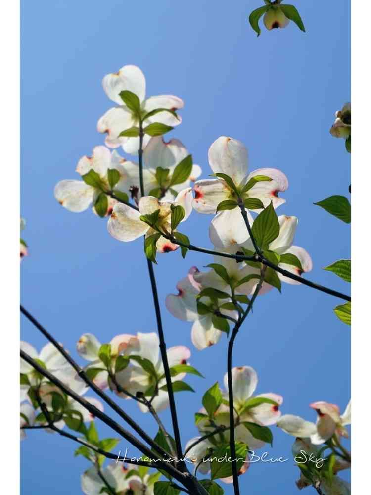 もう間もなくシーズンが終わるハナミズキの花、青空に映える…。🌼🌿🌞😌