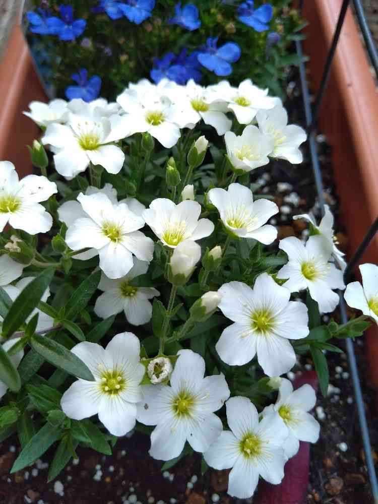 ブルーのロベリアと一緒にプランターに植えています🤗