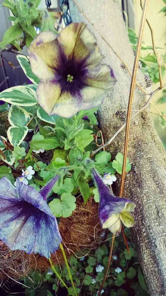 渋い色のペチュニアが冬を越えて咲いてくれました💜