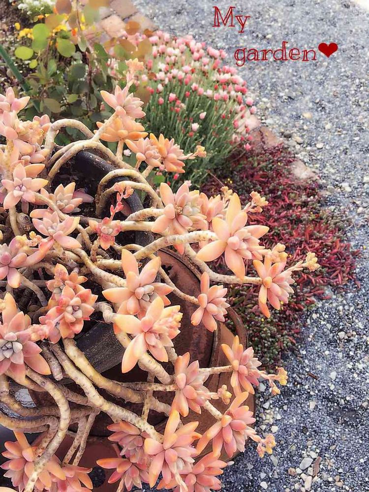 奥で咲いてるのはローダンセマムのアプリコットジャムだよ💖