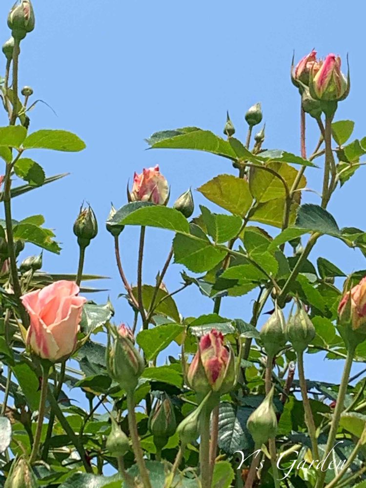 たくさん蕾つけてますね。一斉に咲きそうで楽しみですねぇ🌹