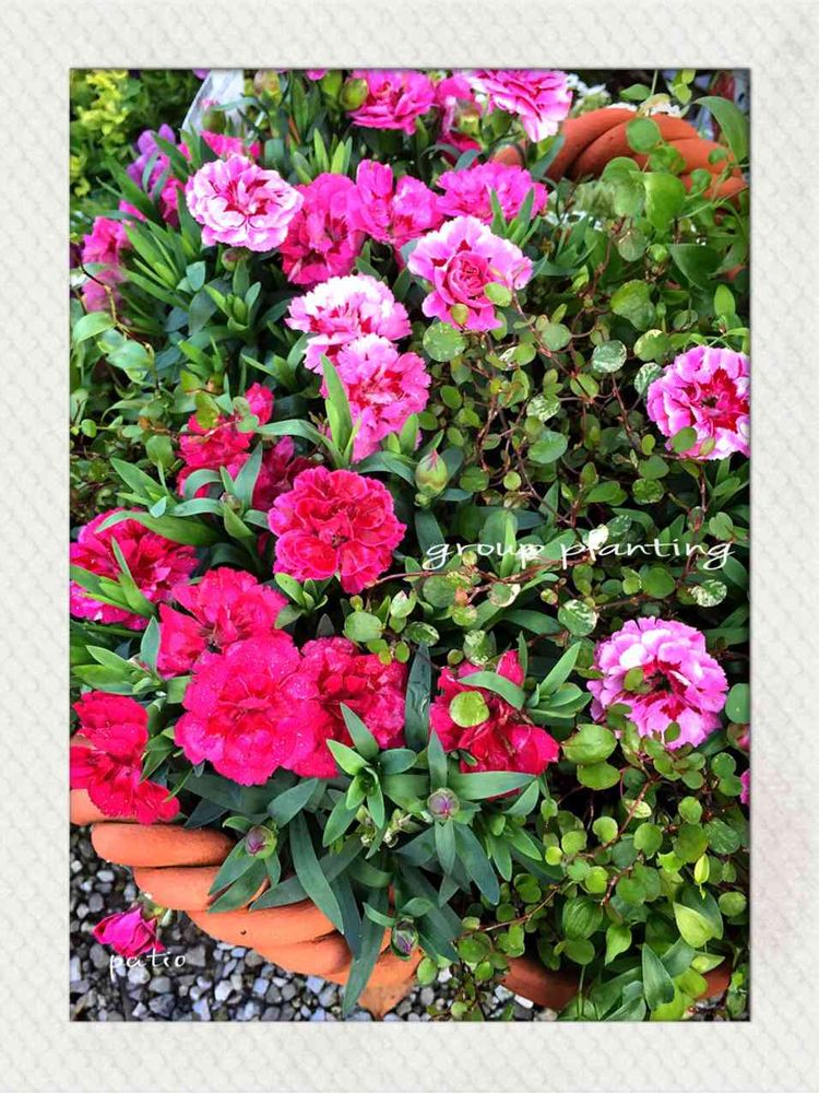ダイアンサス ’ オスカー ’ と グリーンの寄せ植えデス 〜(*´꒳`*)♡