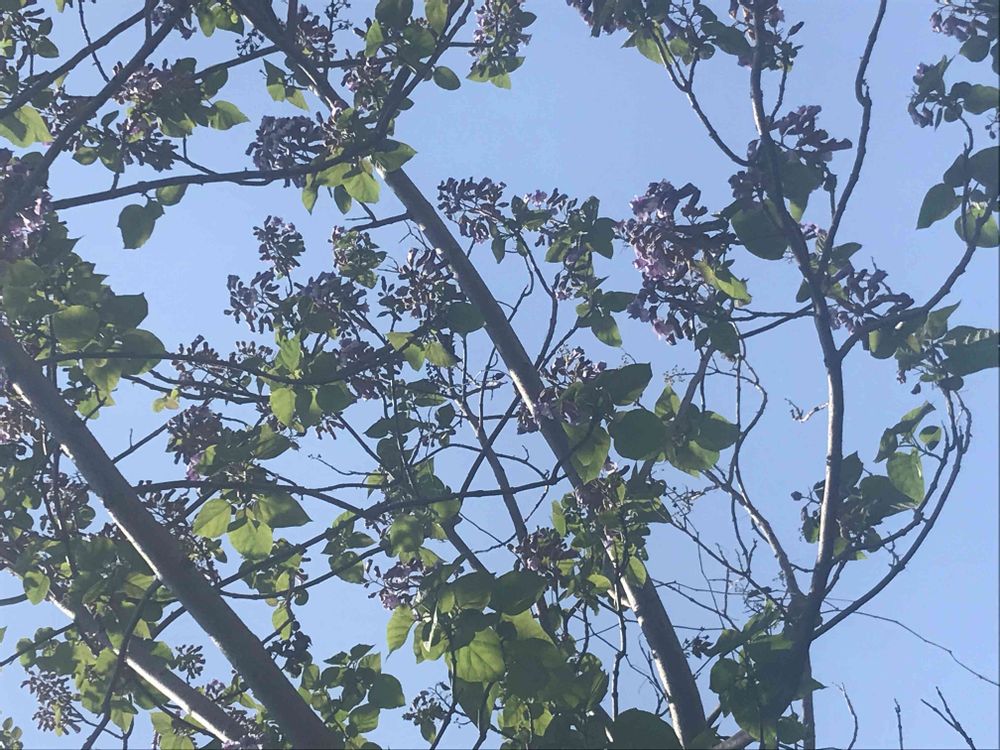 自宅近くの空き家の庭に生えている大変立派な桐の木。家は住む人がいなくてツタに覆われています。桐の木は背が高いのでなかなかきれいに花を撮ることができません。