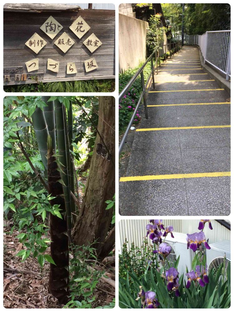 260段の長い階段を登る途中に大きな大きなタケノコ(๑´▽`๑)と陶芸の家。この長い階段は昔坂だったのかな…つづら坂とある道標☺️