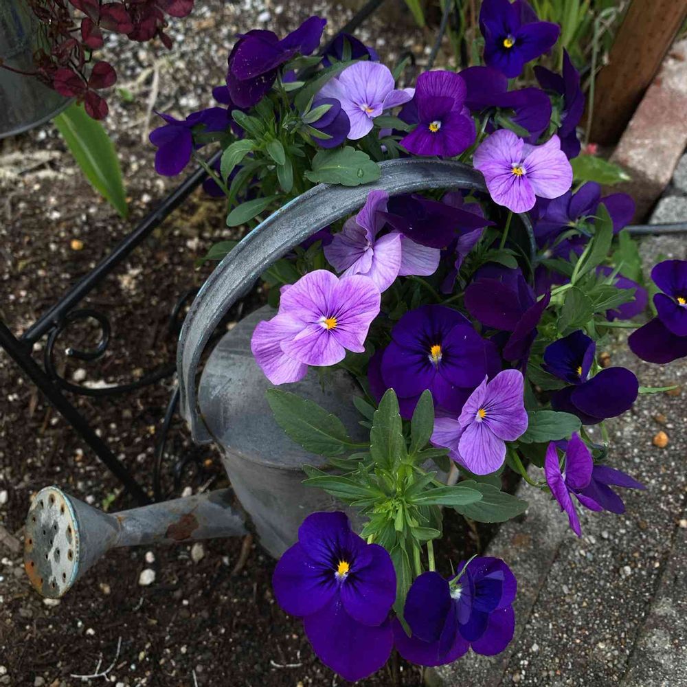 様 ウチの急に伸びたビオラにもブリキのジョウロを用意しようと思います😆💕