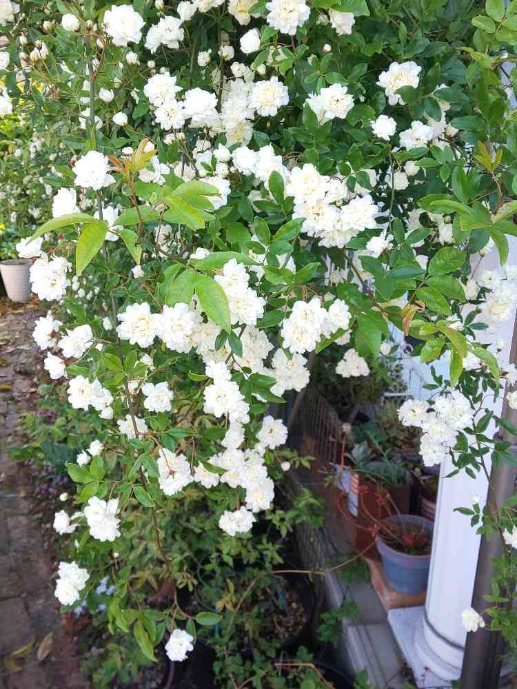 我が家🏡 白モッコウバラ二本あるんですが もうひとつも咲いてくれました😊