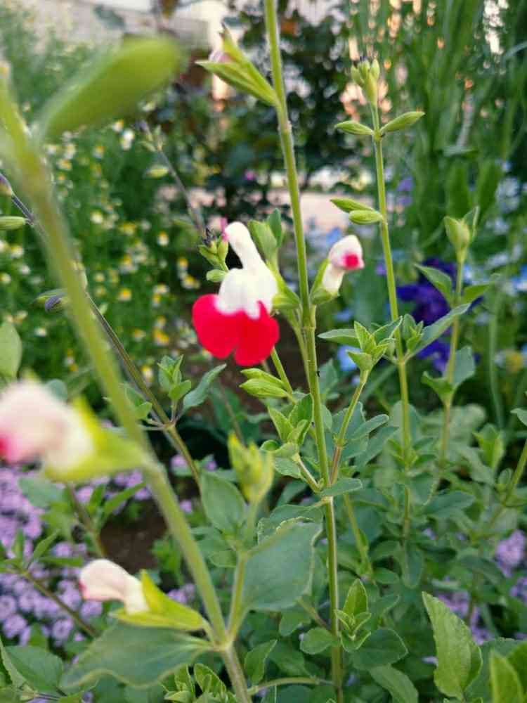 チェリーセージの花も咲きました😃💕この赤と白のはっきりした色合いがとってもきれいです✨