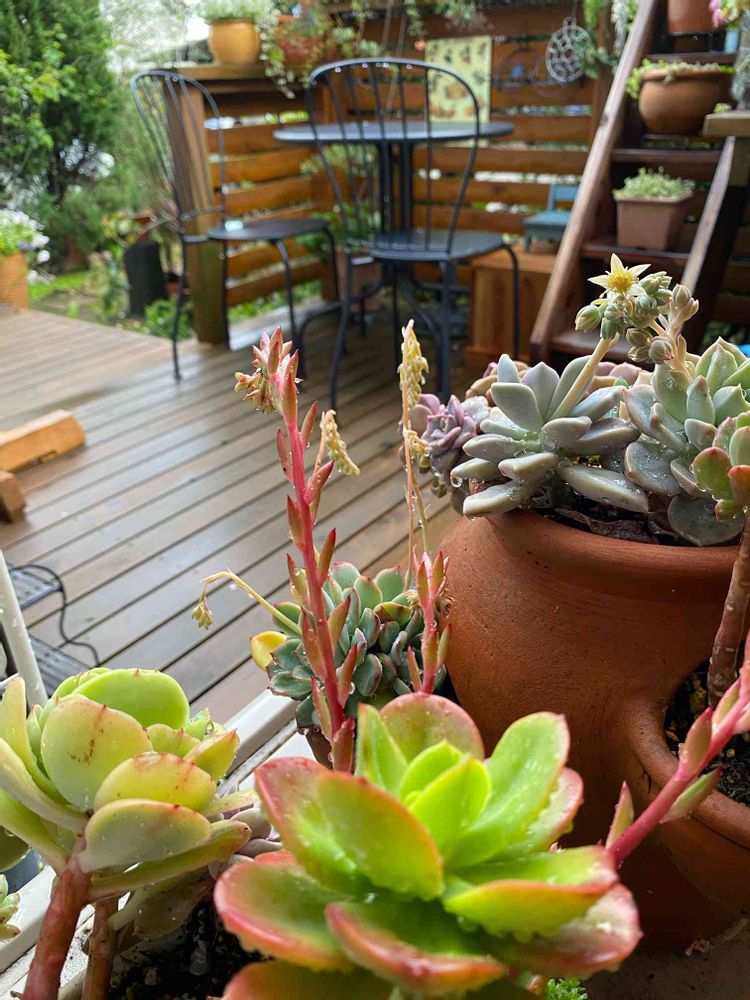 お天気の良い日はここでお一人様コーヒータイムしてます😆💦 多肉やお花には癒されてまぁす💕