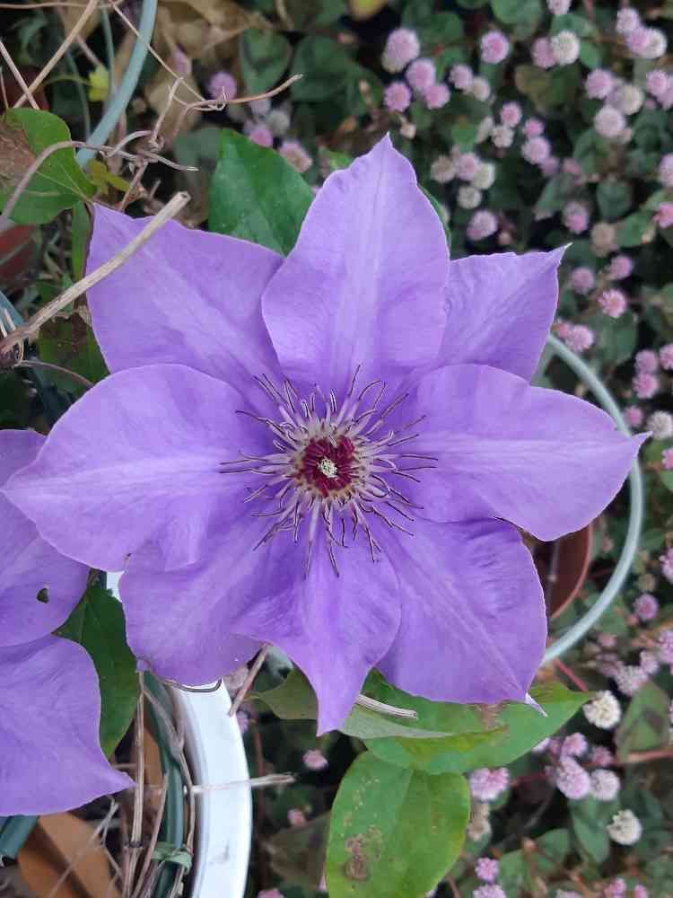 クレマチスなことは間違いないと思います。花弁が8枚なので、「風車」かな?