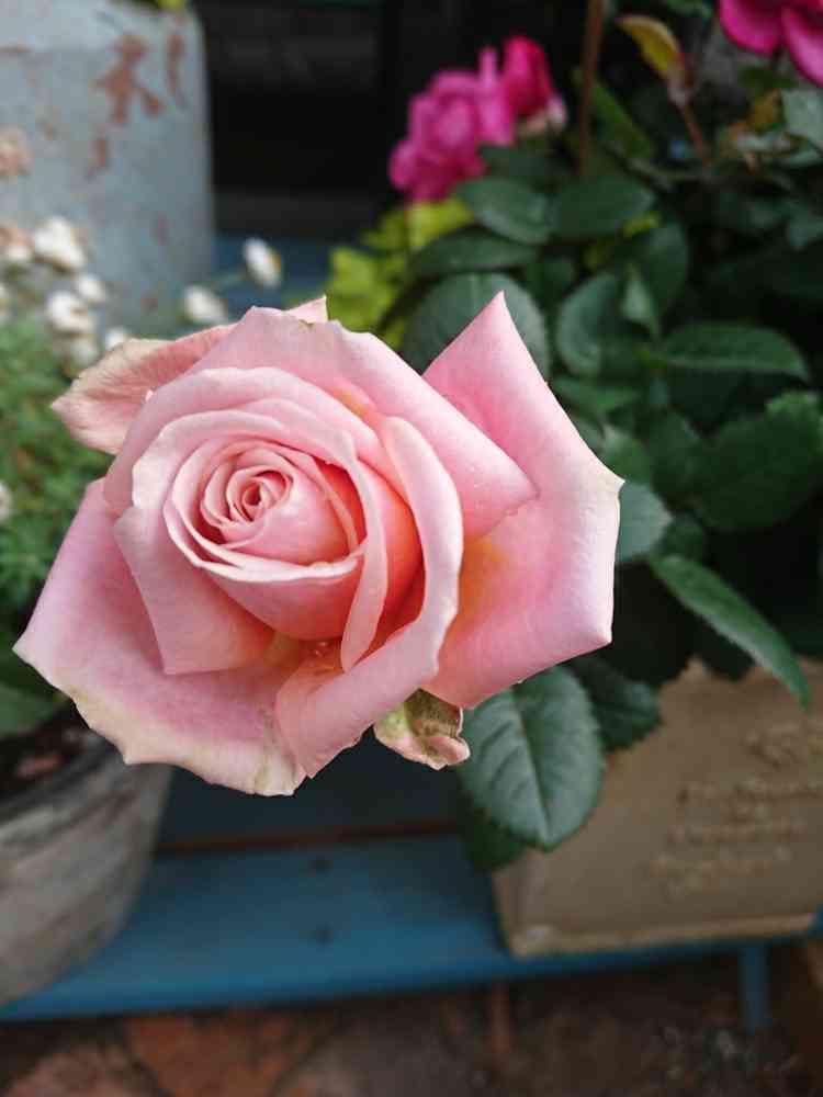 寄せ植えのもう一つのミニバラが咲き始めました😃