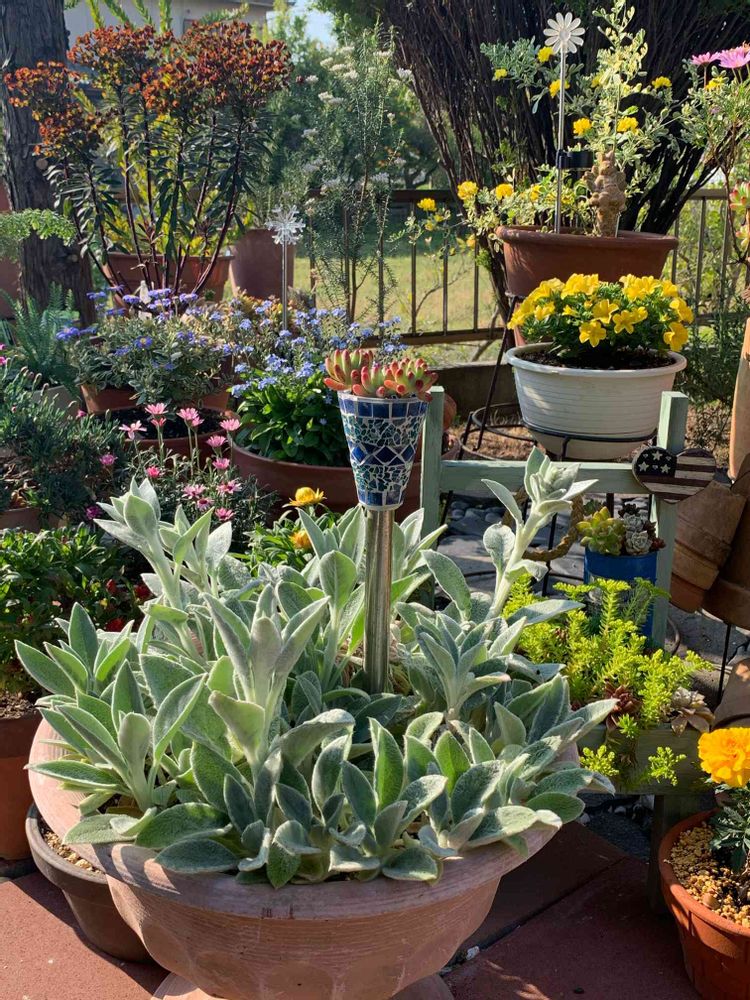 ラムズイヤー!鉢に対して苗の数が多かったかも😅でも、今は葉っぱだけなのになんだか癒されるラムズイヤー✨😊