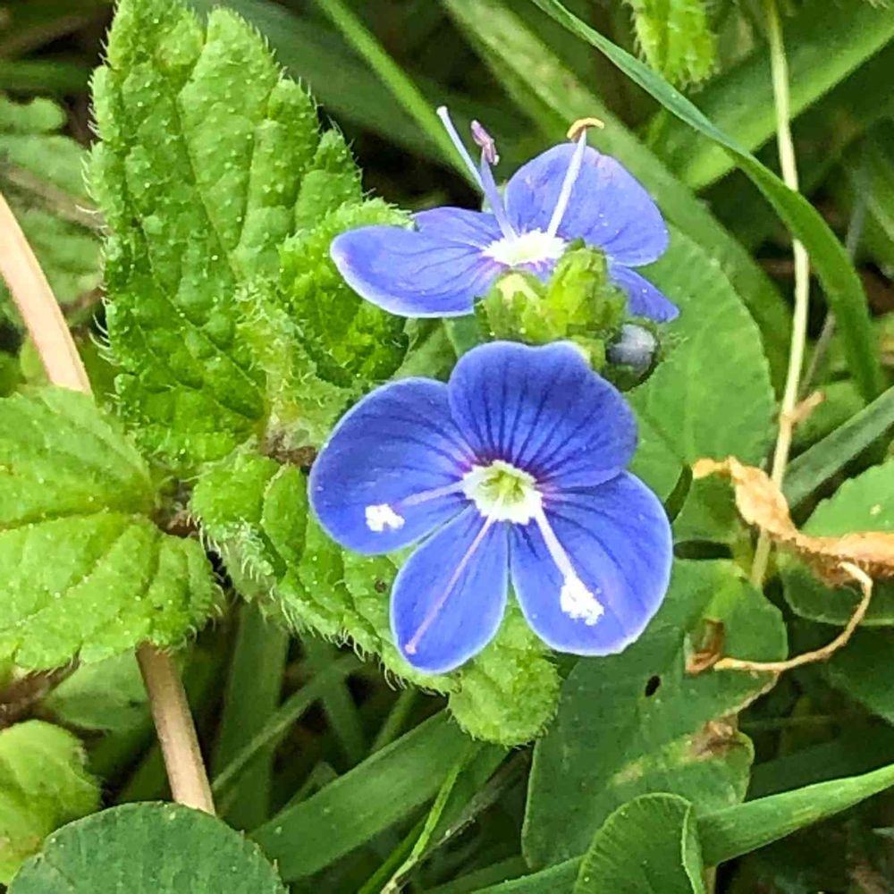 写真だとサイズ感が分かりませんが、パッと見、オオイヌノフグリに似た花ですね😍