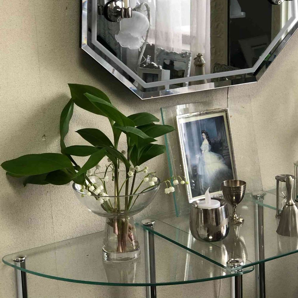 壁掛け仏壇「鏡壇ミラリエ」に今日(5/1)の誕生花の「スズラン(鈴蘭)」を飾ってみました。