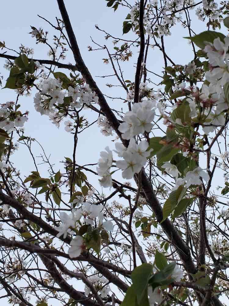 この隣の木は青々と葉が繁っているのにこの桜だけまだお花が!