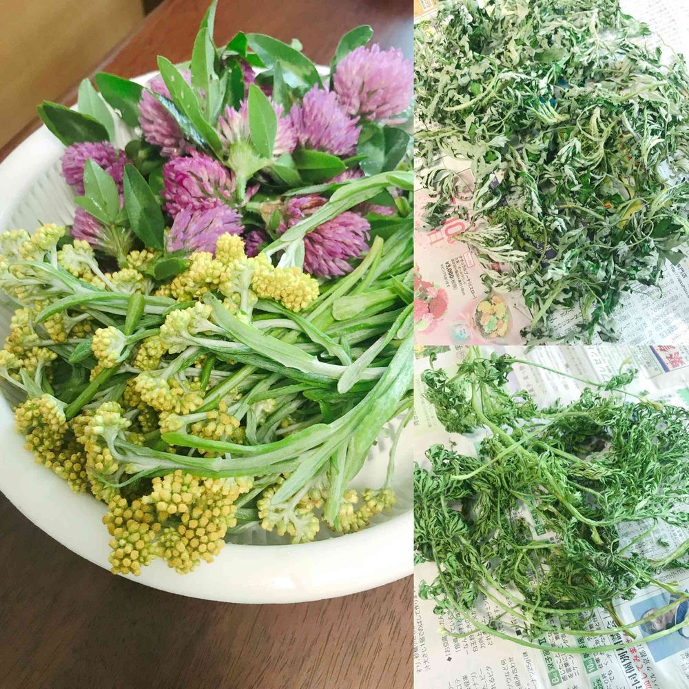 昨日の収穫を乾燥させたのは『ヨモギ』『ニンジン葉』