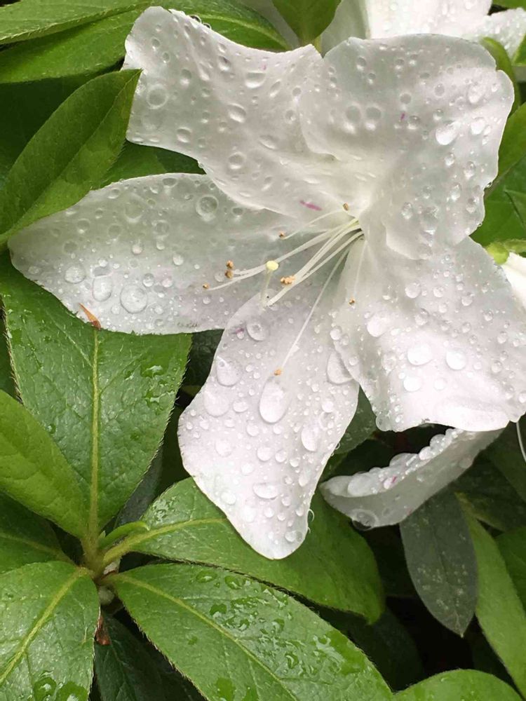 昨夜からの雨に濡れて洗われたように咲いてました。