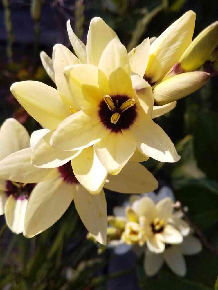 イキシアが今年も堂々と咲いています(⇀‸↼)✧でも茎は細いのに頭が重くて大変そう(´w`*)