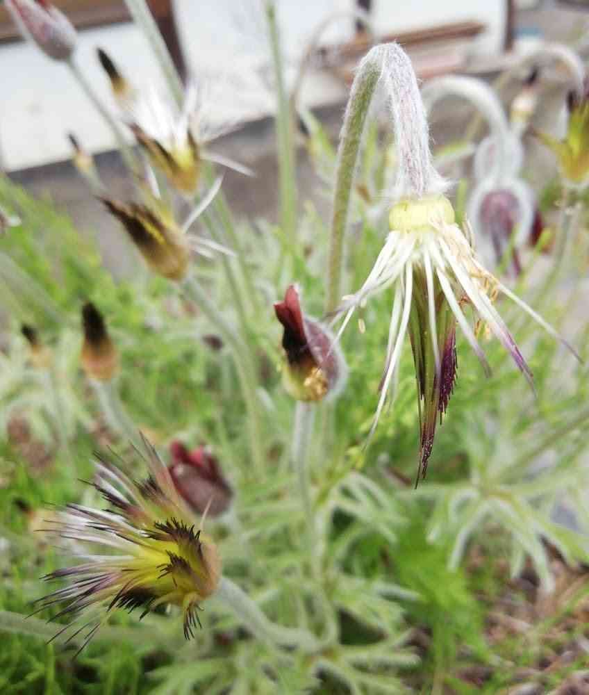 花が終わると、花茎が伸びて高さ30~40cmほどになります。萼片が落ち、綿毛を付けた花柱の束が表れるそうです。