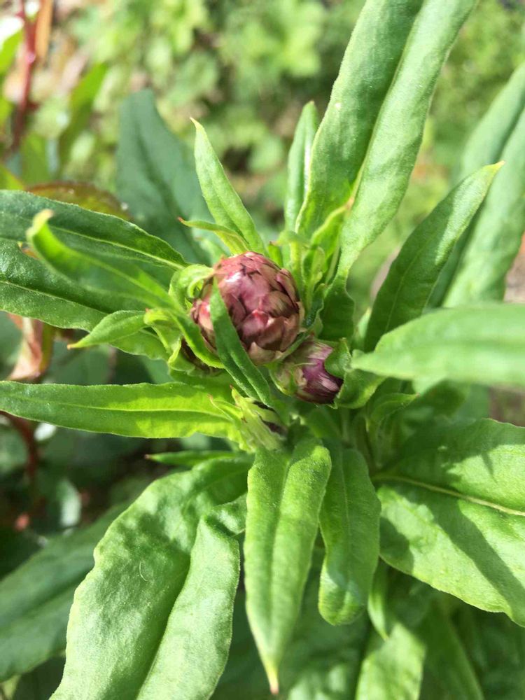 ヘリクリサムのつぼみが、空をのぞきだした!
