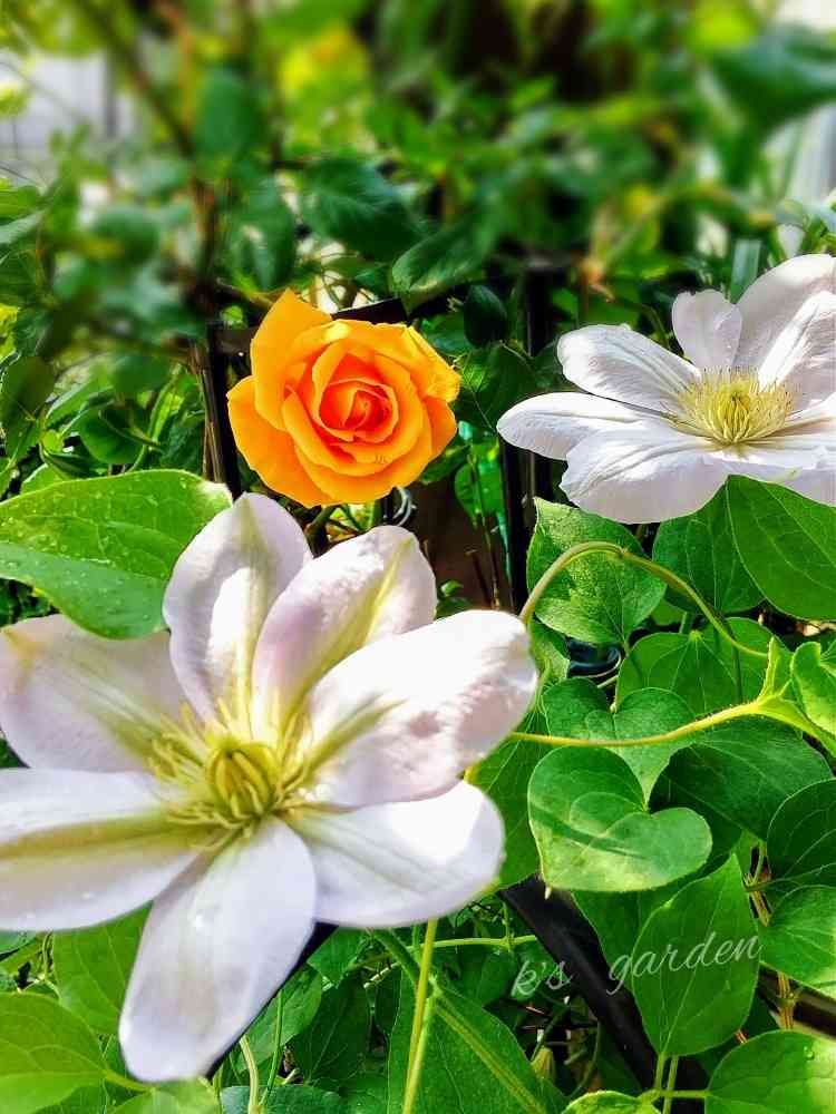 kikorinさんの小さな庭,バラ ロイヤルサンセット,クレマチス白馬の投稿画像