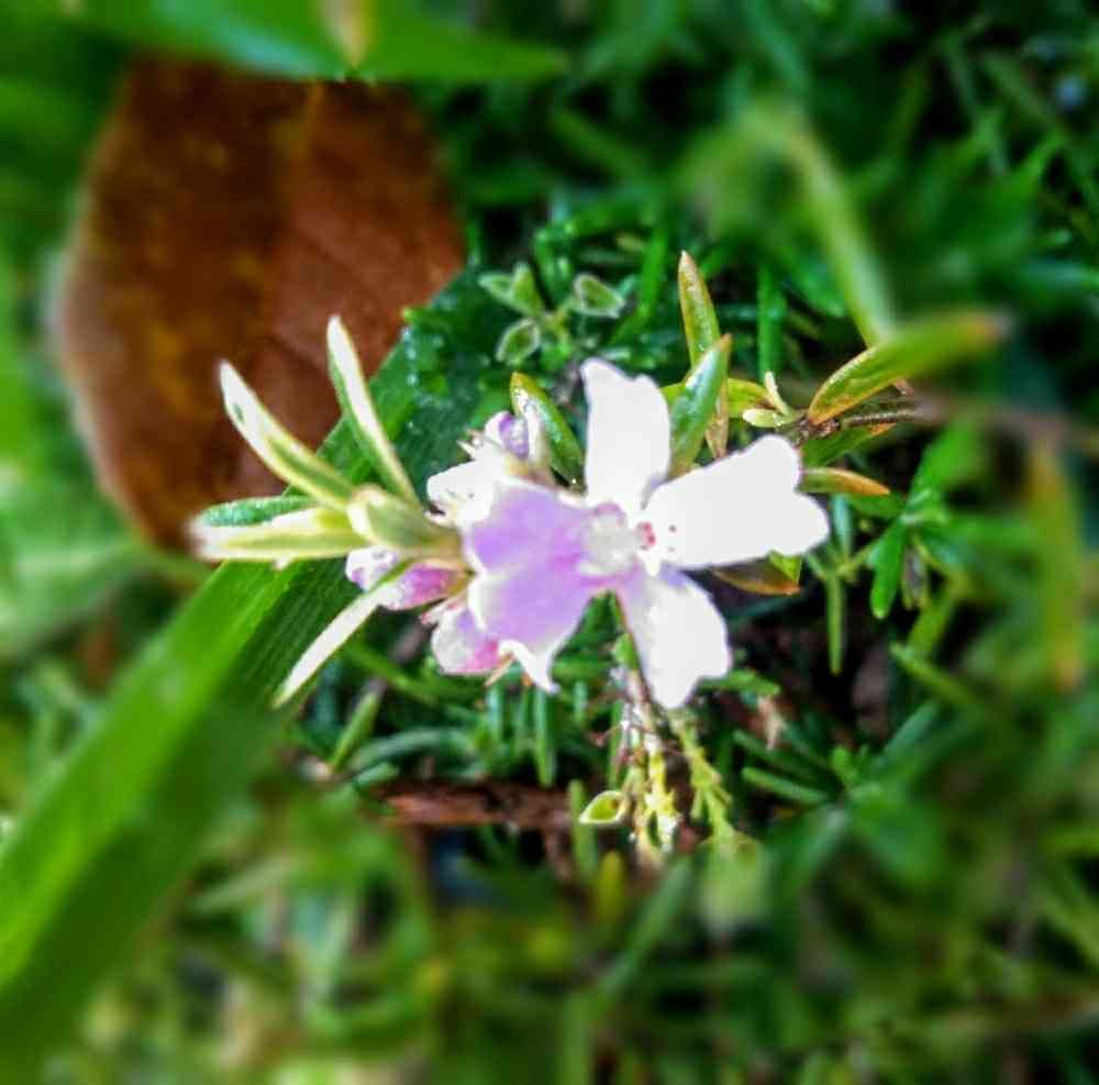ウエストリンギアの花が、いつの間にか咲いてました。枝先が枯れていて、