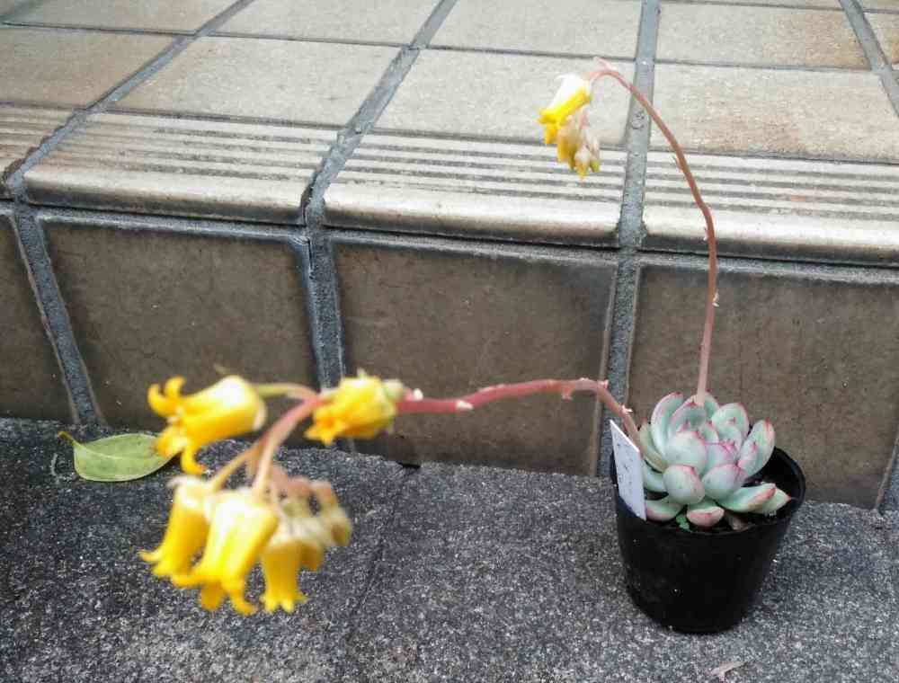 ずいぶん前から蕾がついていた花うらら、いつ咲くのかなぁと思っていましたが、やっと咲きました。花茎がずいぶん長くのびたので、本体と花を一緒に写真を撮るのが難しかったです。