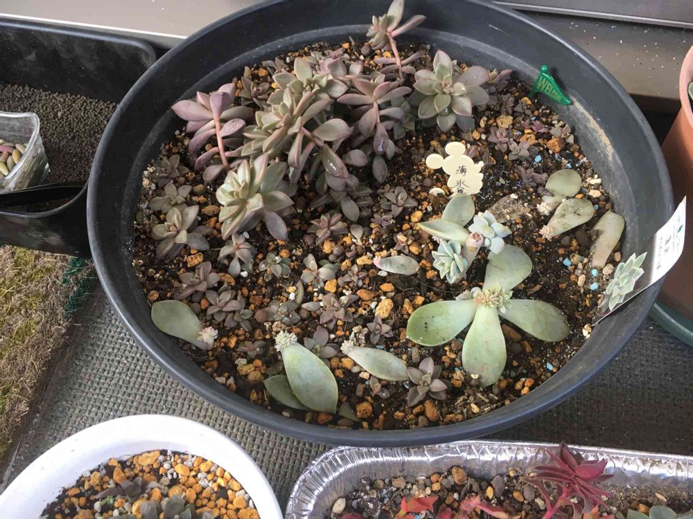 薄氷も、葉挿しにするとほぼ発芽してくれて。ブロンズ姫も薄氷も他のところで葉挿しが成長したので、分けました。これは、分ける前でーす。スカスカごちゃごちゃ😅