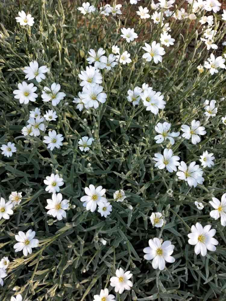 昨日近所に咲いていました。葉は少し白いとゆうか銀色がかってる感じで、お花は一円玉か5円玉位の大きさだったかと思います。こんな感じのお花がすごく好きなので庭に咲かせたいなぁと思いました!どなたかこの花の名前を教えて下さい(^^)