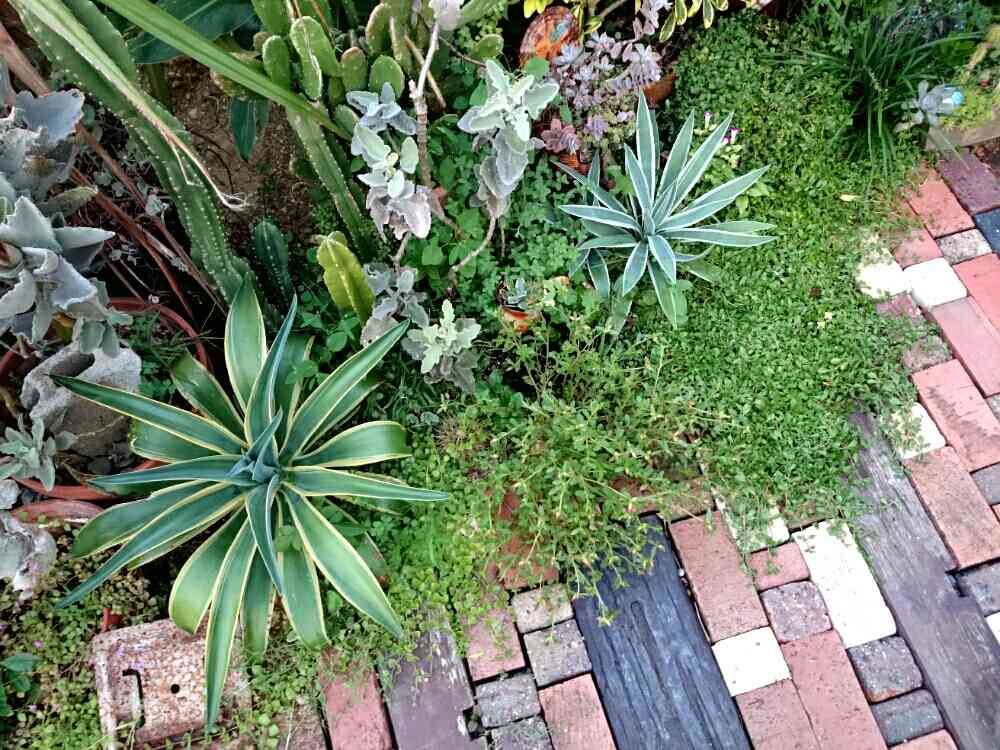 アガベが鎮座する玄関アプローチの多肉エリア🌵