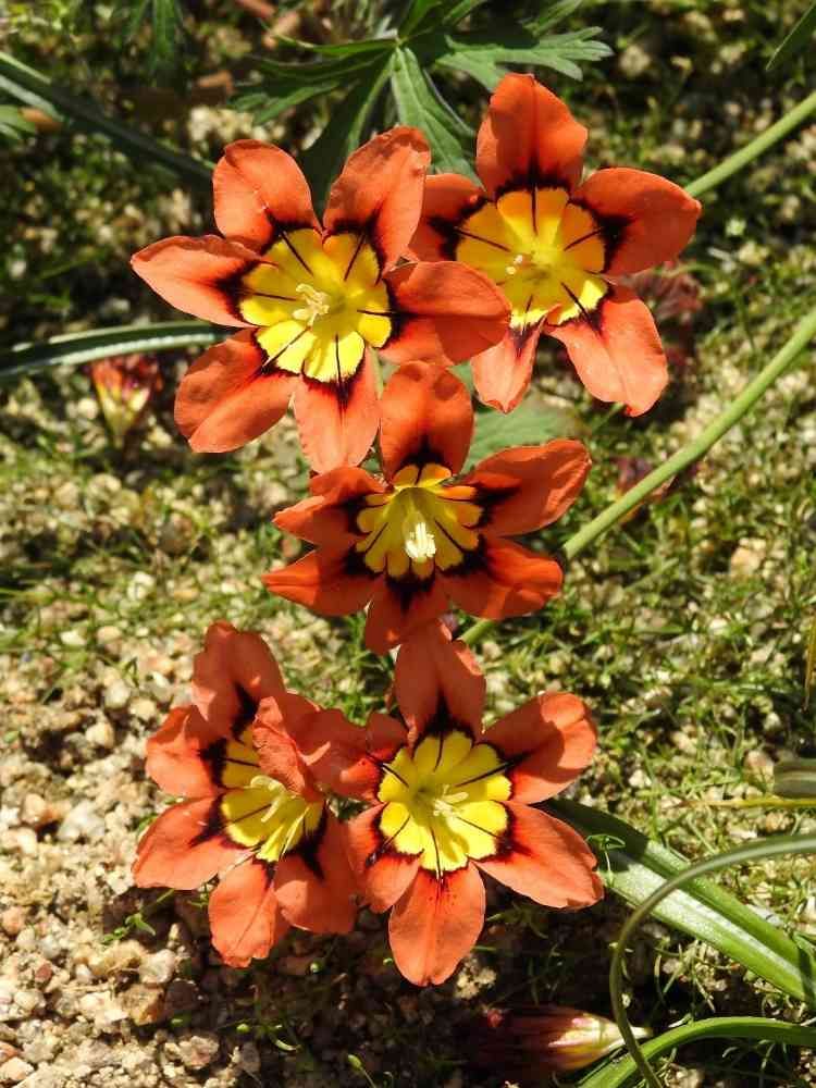 介護施設のエントランスで咲く🌸スパラキシスの花🌺