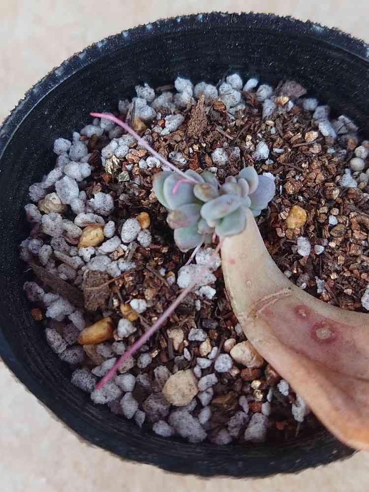 数日前から少しだけど外に出したせいなのか、根っこが頑張ってくれて、下からも出たやつが着地!