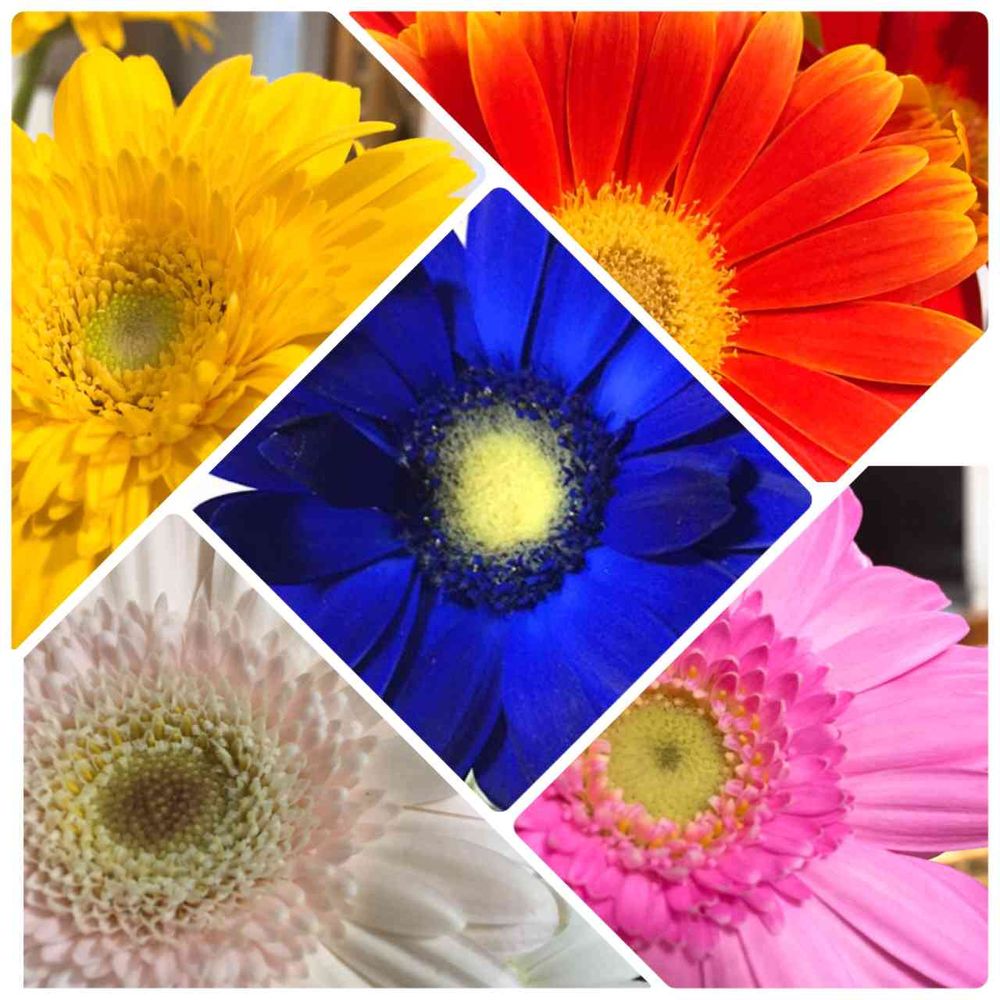 真ん中の青いガーベラって見たことないけど本物なんですね~👀✨✨✨